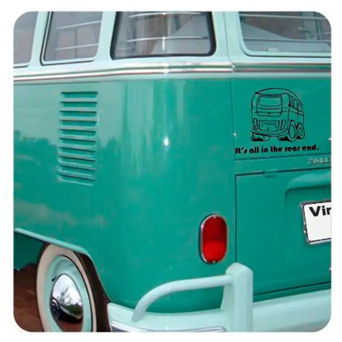 ES HÄLT DEM WETTER PERFEKT STAND UND IST SOGAR ZUM SEGELN GEEIGNET. KLEBEN SIE ES, WO IMMER SIE WOLLEN, AN EIN TELEFON, AN EINE WAND, EINEN KLEIDERSCHRANK, DEN KÜHLSCHRANK, DAS MOTORRAD, DEN TISCH, ES HÄLT DEN HÄRTESTEN BEDINGUNGEN STAND. WIR BIETEN IHNEN DIE GRÖSSTE SAMMLUNG AN AUFKLEBERN FÜR WOHNMOBILE, SURFER, VOLKSWAGEN, FREAKS, KUSTOM, 4X4, MOTORRÄDER UND TIERE.